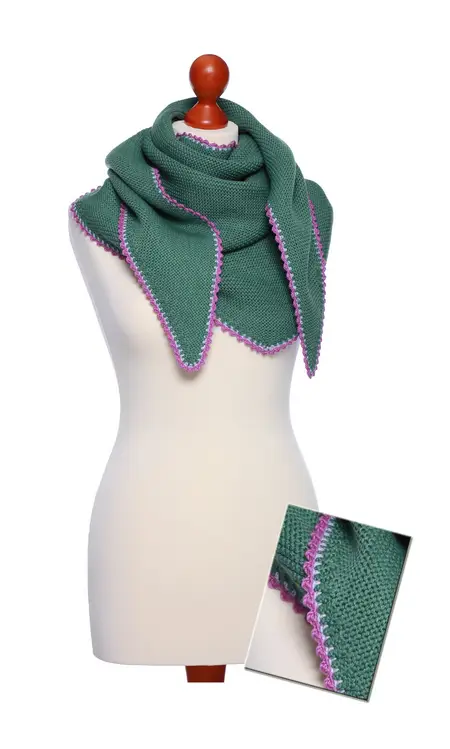 Die von Hand gehäkelte Umfassung kann nach persönlichem Farbwunsch gefertigt werden.